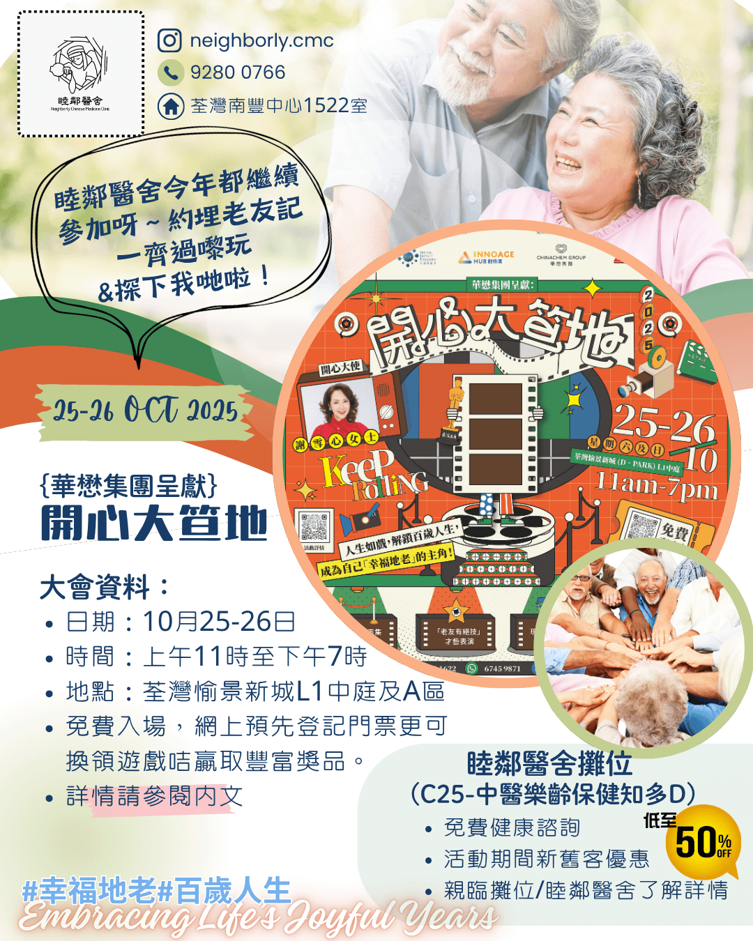 睦鄰醫舍期望成為大家的好鄰舍! 本診所致力推廣中醫保健,以養生自療為本的健康信息。講座皆由專業註冊中醫師主講,藉以加強公眾對健康知識的瞭解,以預防個人健康出現問題,歡迎大家報名參加。